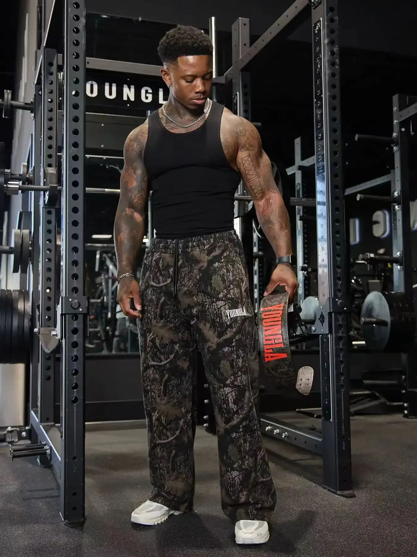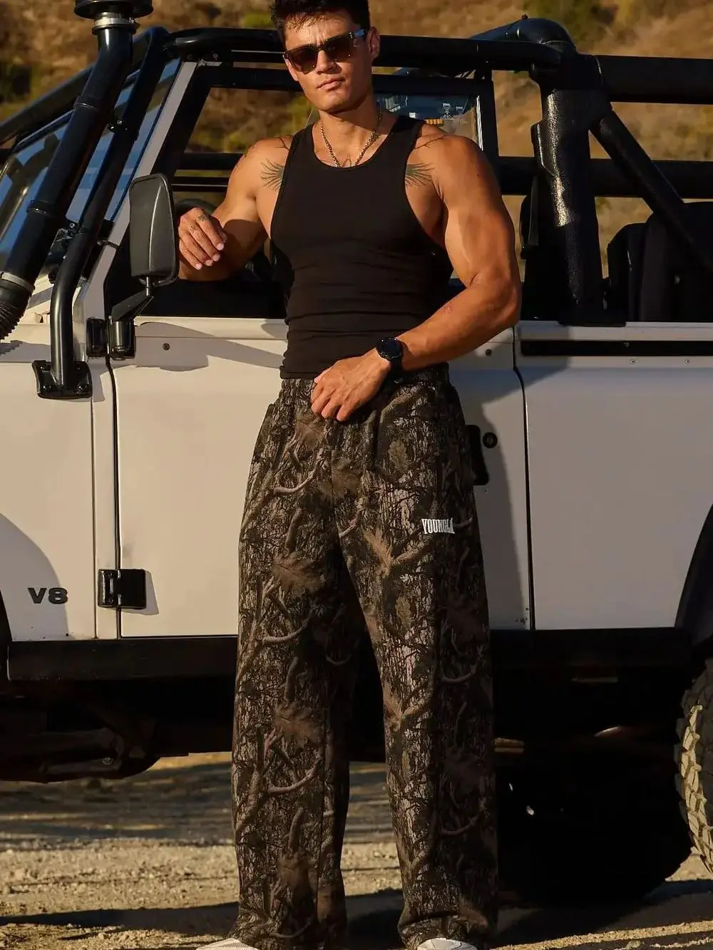 2025 men New style Spring American digital camouflage print sports fitness Trousers loose and versatile tide wide-leg pants