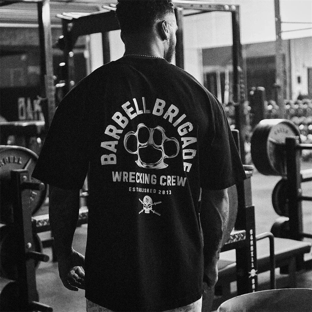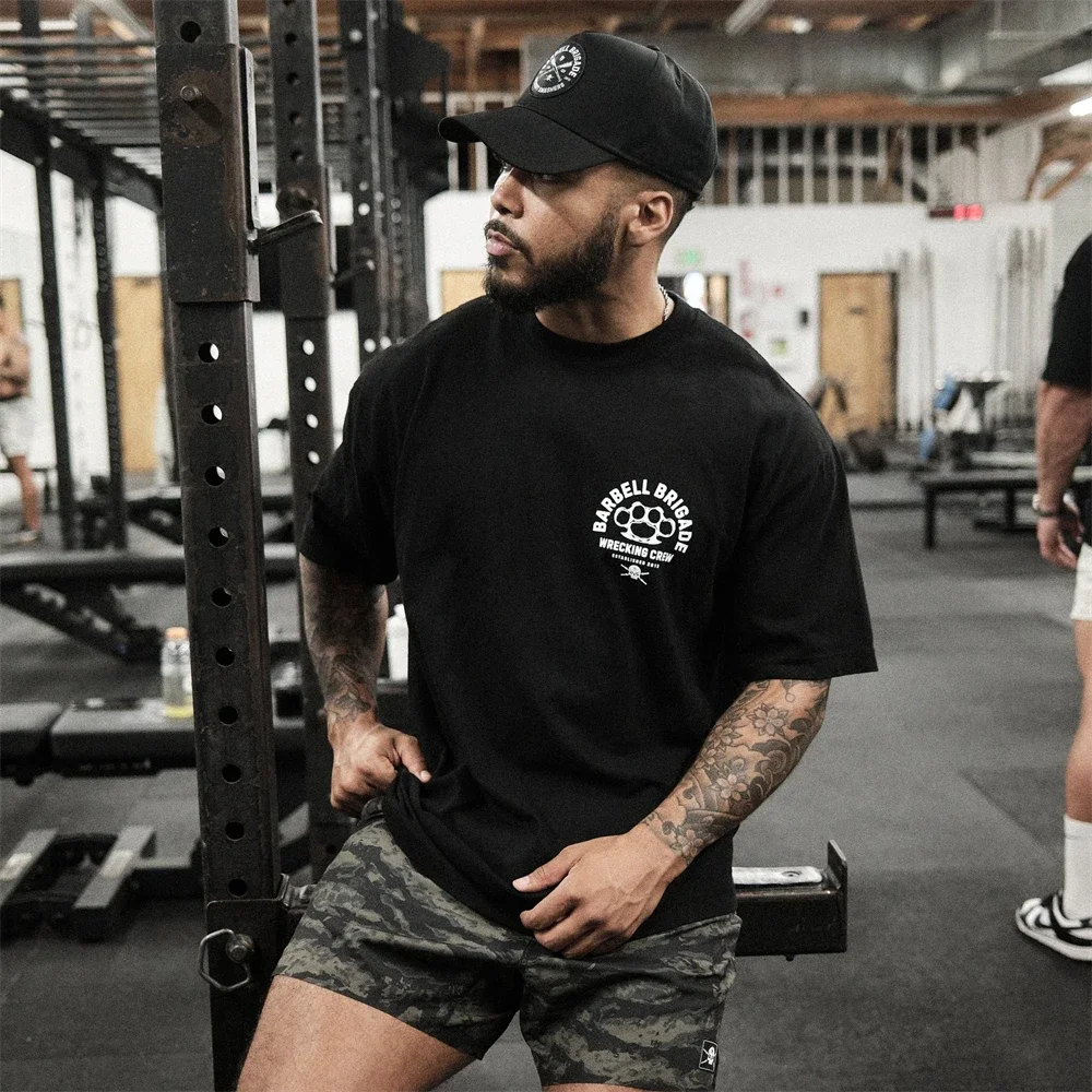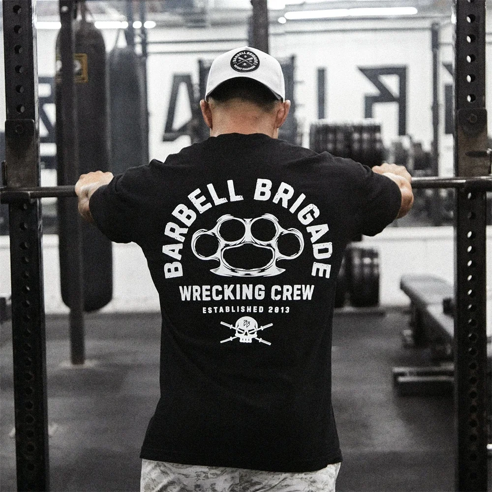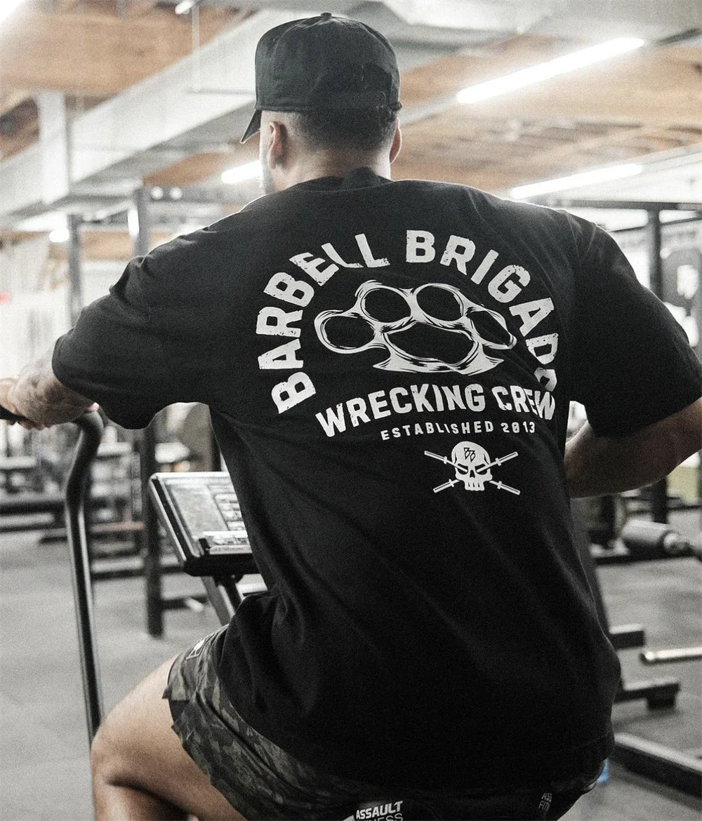 Barbell Brigade 2024 Summer Gym T Shirt Men Bodybuilding Fitness Cotton Short Sleeve T-shirt Training Tees Fashion Muscle Tshirt