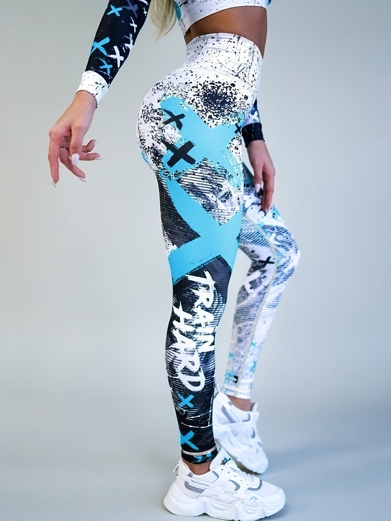 Letter Printing Slimming Running Training Yoga Leggings, High Stretch Seamless Tummy Control Sports Tight Pants, Women's Activewear