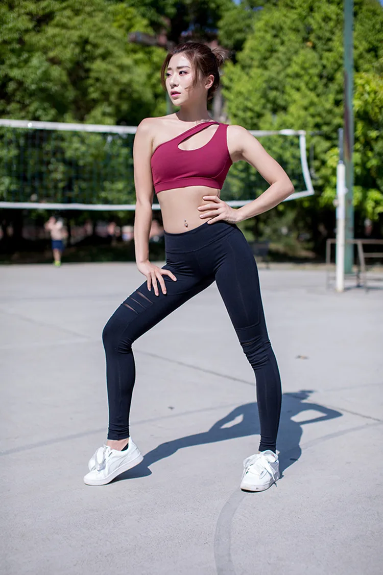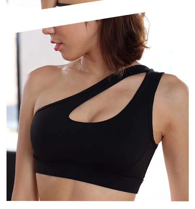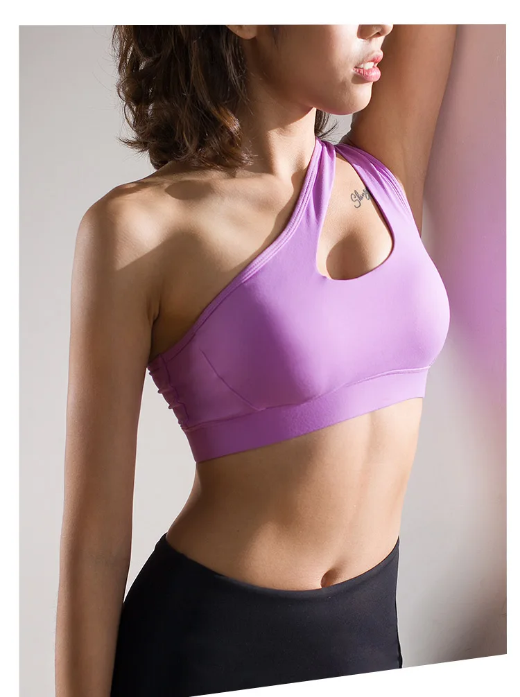 Mermaid Curve New Women's High Impact Personality oblique shoulder strap Sports Bra Women running fitness Bra Top