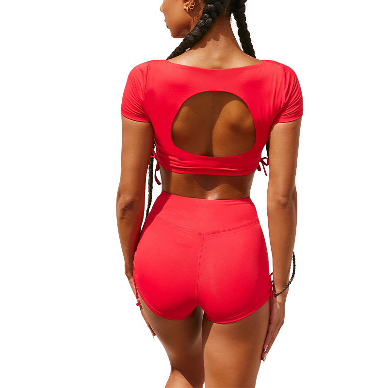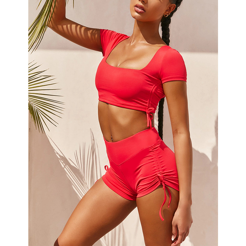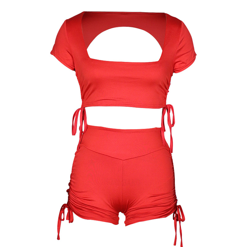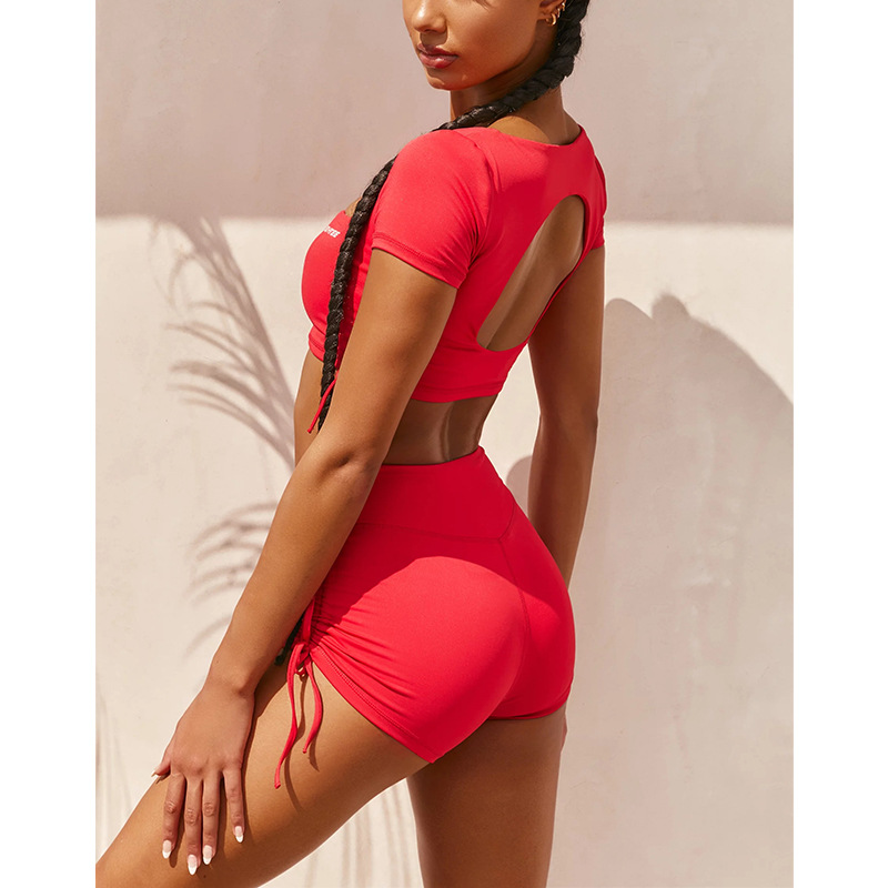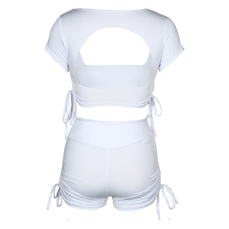 New Square Neck Open Back Sexy Tight Shorts Suit Sports Women's T-Shirt 2 Piece Set
