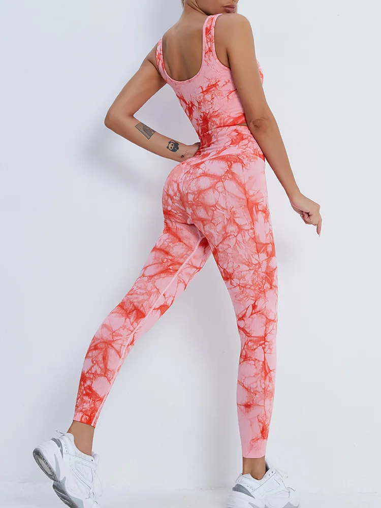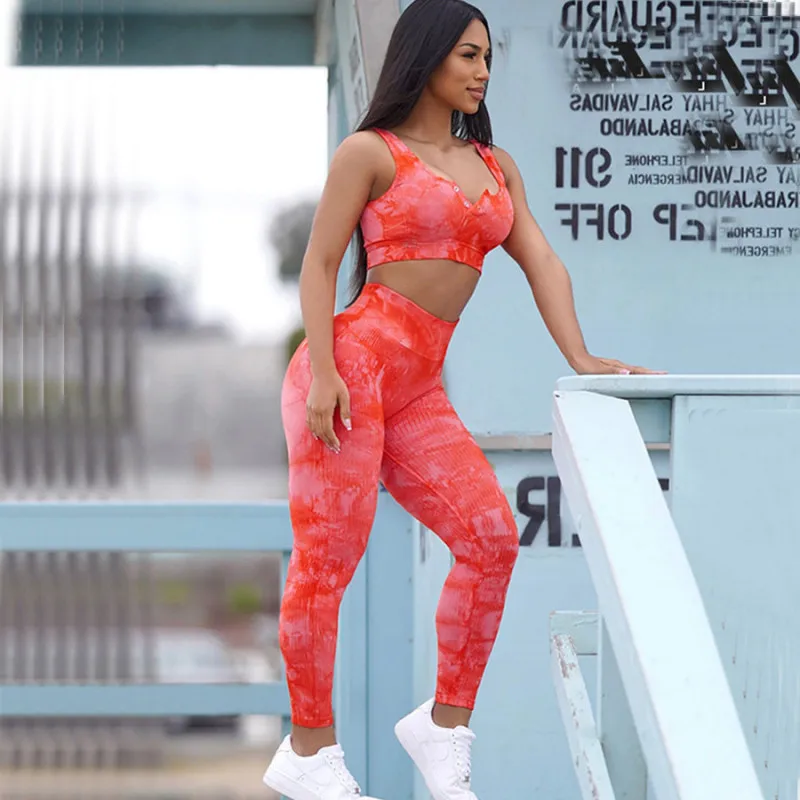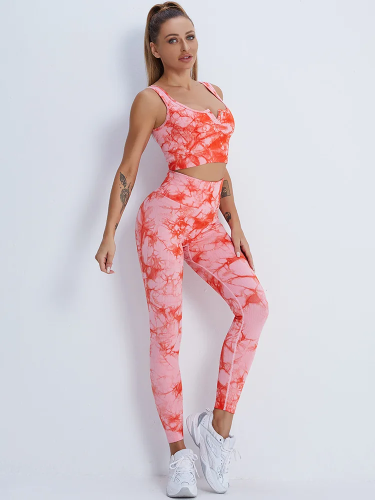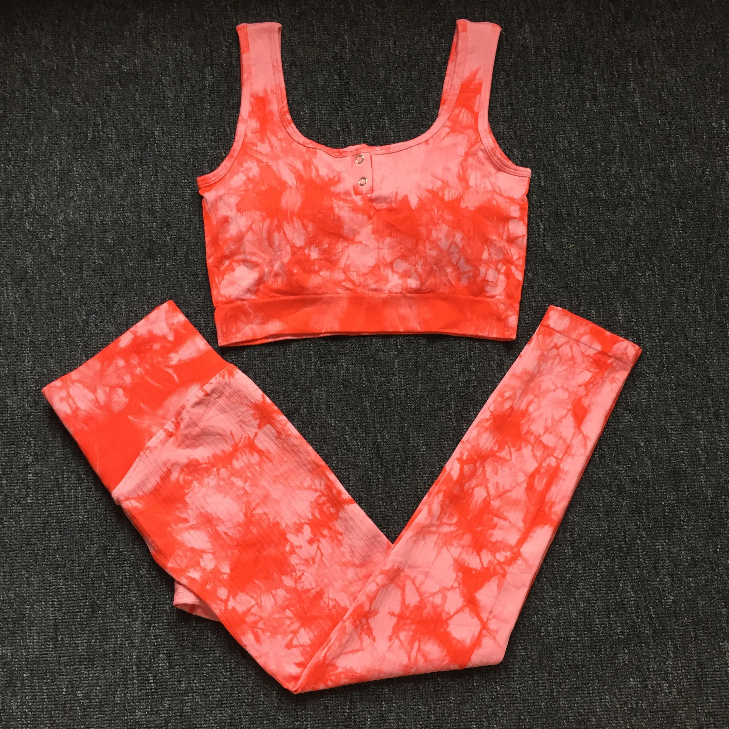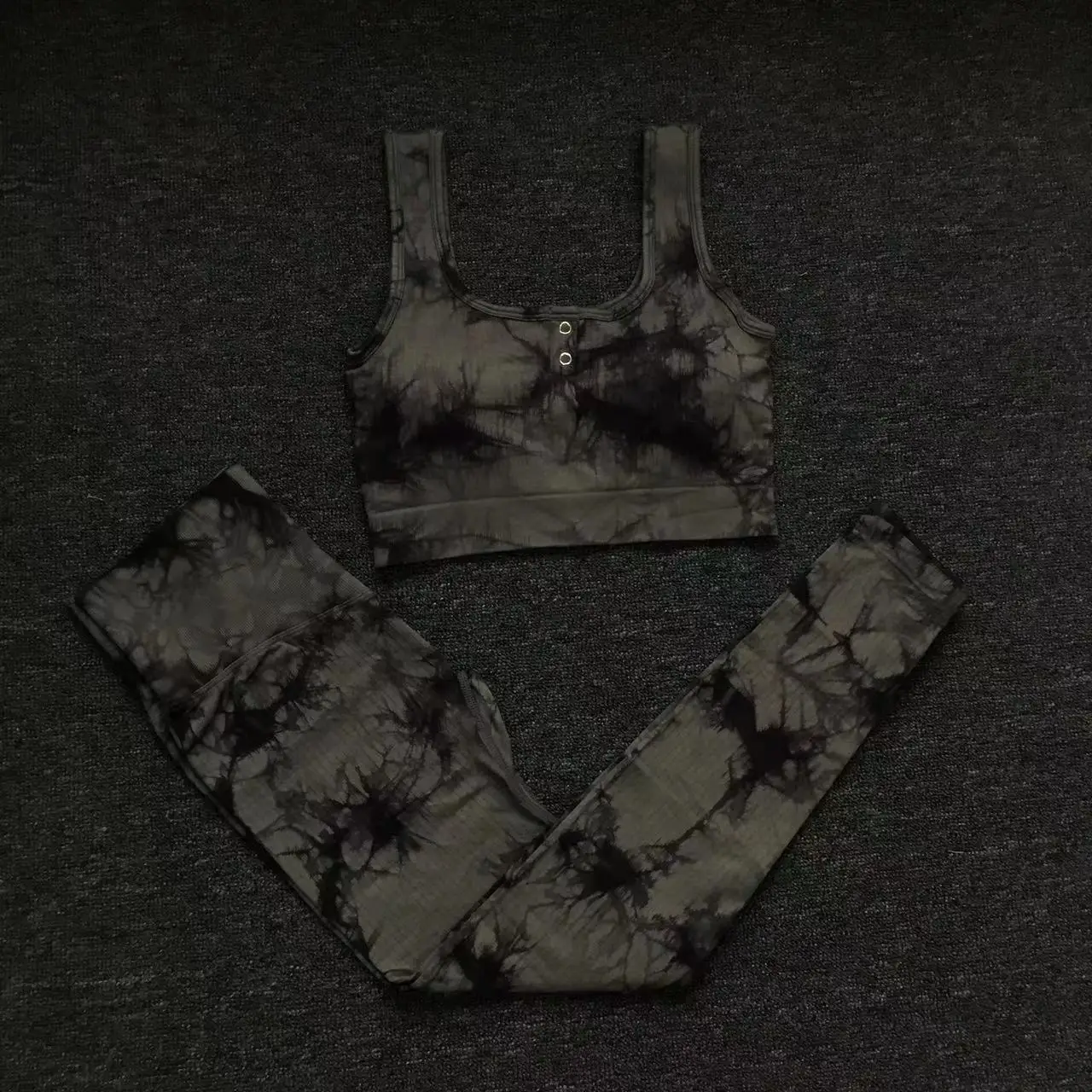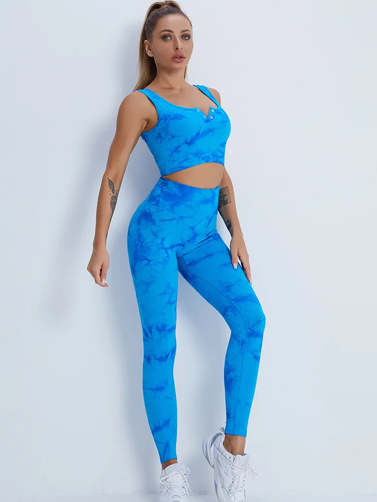 Sports Bra Set for Women Yoga 2 PCS Oufit Fitness Suit Seamless Front Button Crop Tank Top Gym Leggings Workout Clothes