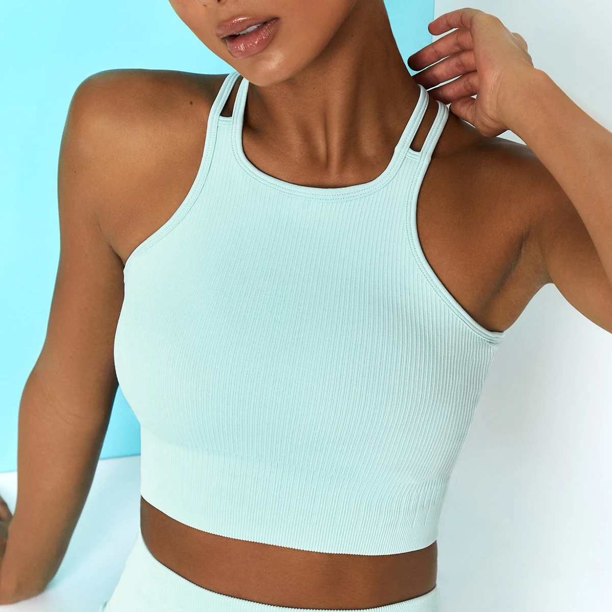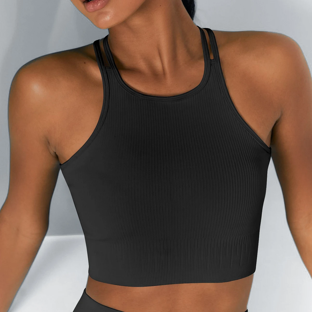 Women Sleeveless Running Shirts Sexy Exposed Navel Yoga T-shirts Solid Sports Shirts Quick Dry Fitness Gym Crop Tops Sport Wear